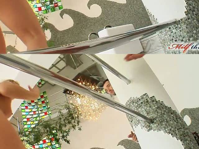 Short-haired blonde fucks like a pro in a threesome