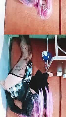 Pink hair sissy e-hotty screwing booty with sextoy