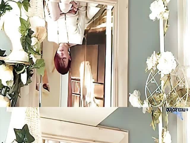 Red haired cougar-in-training admires her big boobs and fur-lined pussy in the mirror before caressing her clit into an orgasmic