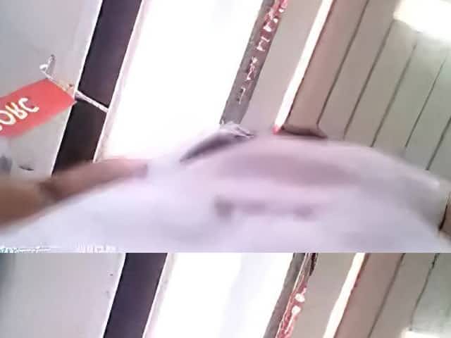 Sexy girl in a tight short skirt walks around and spy camer