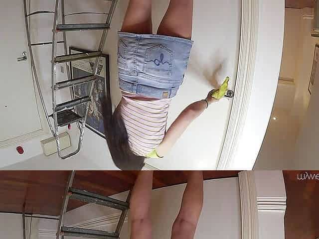 Short skirt pissing on the ladder