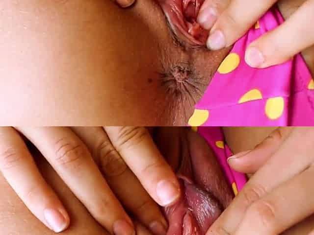 Solo Janyk Brones moans while fingering her shaved pussy