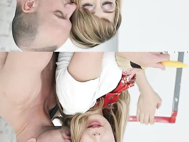 Sweet blonde girl Emma Starletto spreads her legs to ride a fat dick