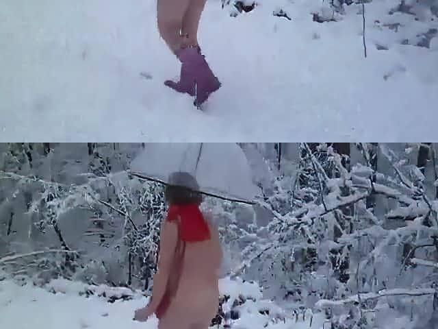 Naughty babe shows her hot natural tits on cold czech street