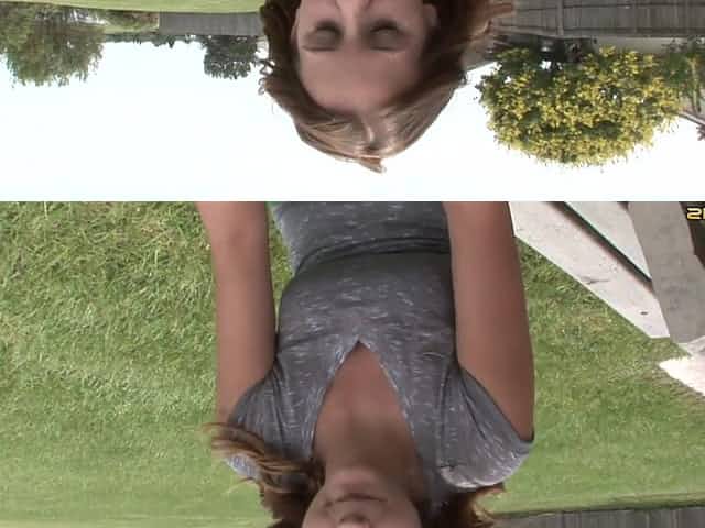 Kinky brown-haired chick shows her tits and cunt in outdoor solo