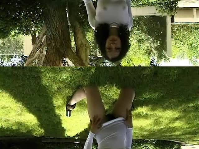 Ladies show off their cunts and fool around outdoors in the sun