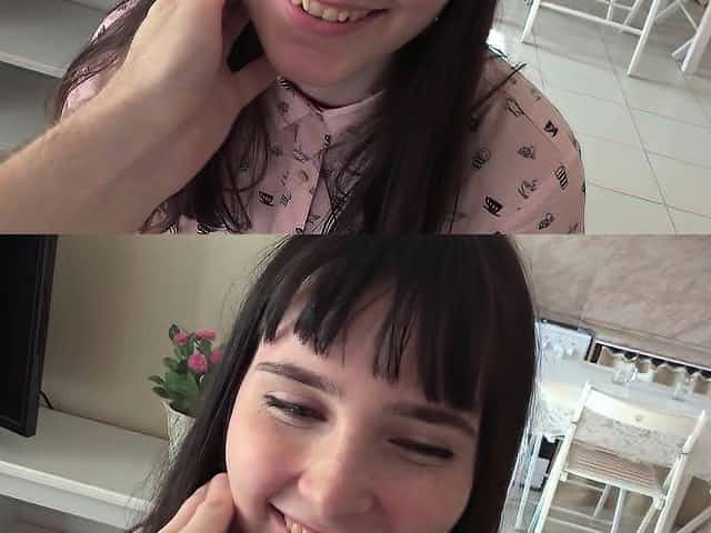 This shy cutie is really shocked when the agent she met on