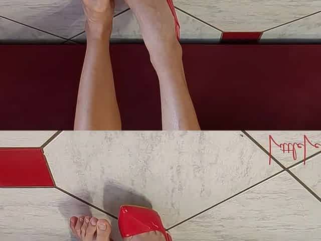 Shy Asian Feet Meet Red High Heels for 1st Time - Foot Fetish Tease Play - Cute Toes Play with Sexy Shoes