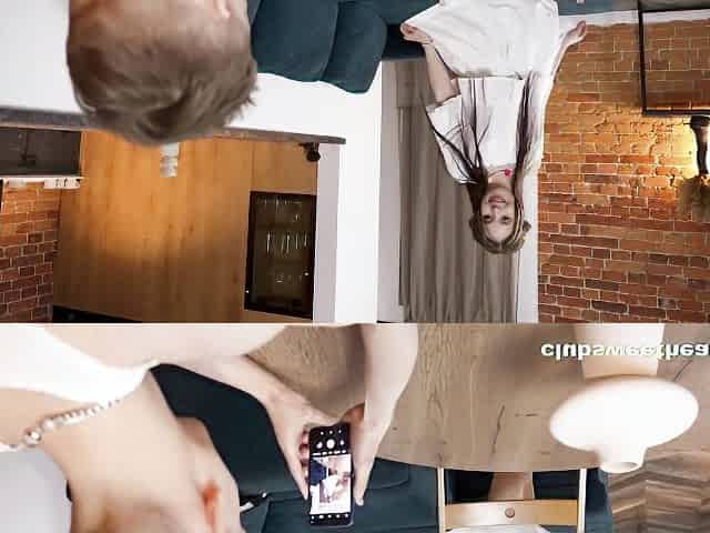 Shy slut fucks in front of the camera doggy style on the couch at home