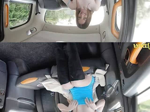 Skinny slender brunette Arina Shy fucked on the backseat