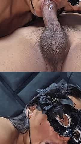 Shy girl in the mask loves to get her pussy licked and