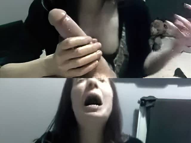 Shy girl in front of big cock, look her nice eyes (Camaster)