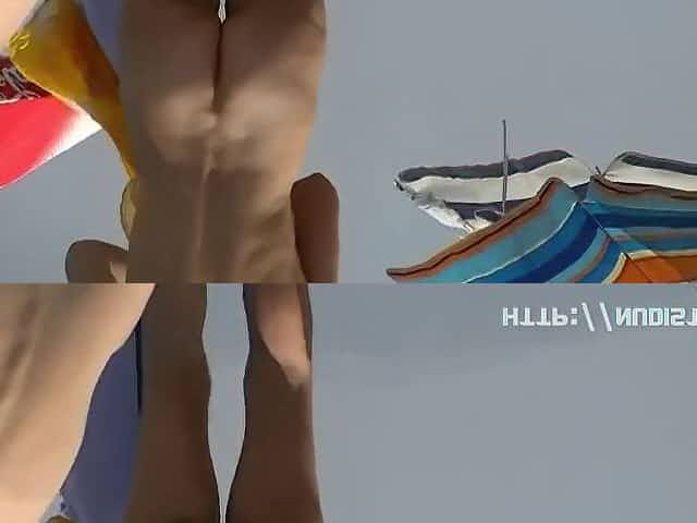 Nudist video on the beach there is a shy girl, playing in the water