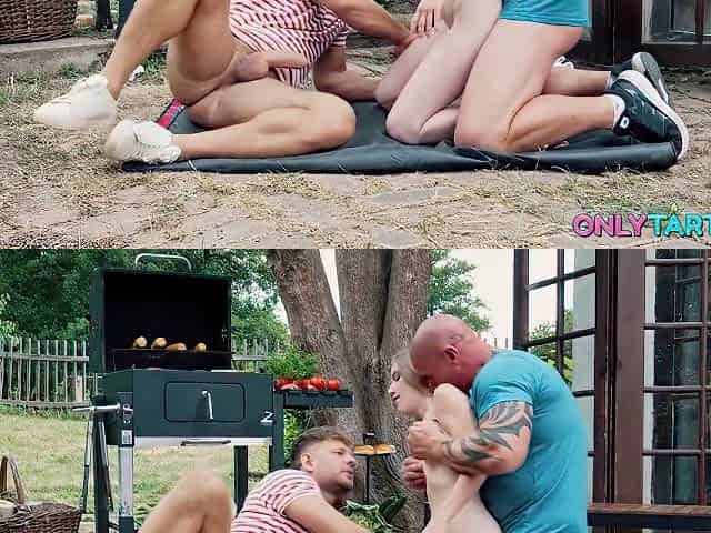 Not so shy babe Valeria shows her true nature by taking on two hard cocks