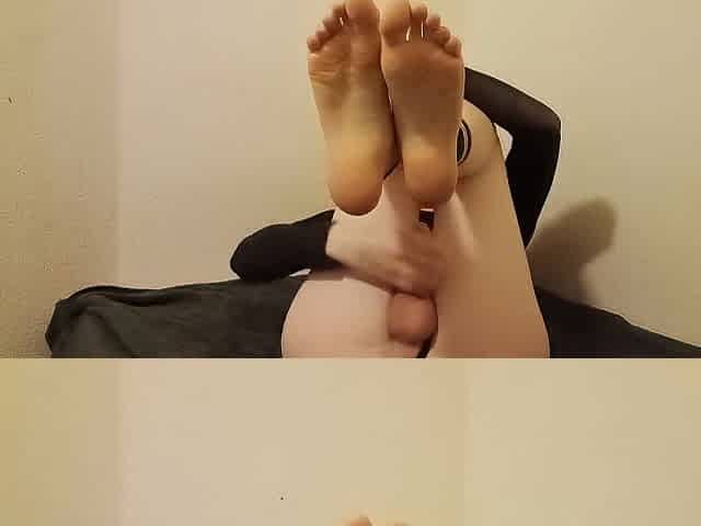 Femboy feet tease with giant toy