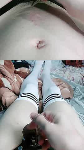 Cute Femboy in ripped hose puts toys in butt