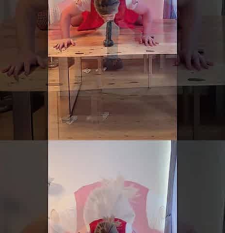 Sissy riding Ebony Vibrator on Table