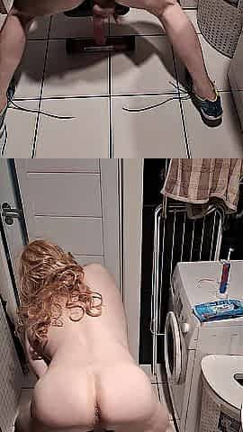 Sissy Anna talking to Dad during the time that sucking Sex toy