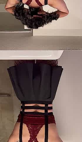 sissy in red bottom high heels and white hollow top exposes herself and pees beneath highway bridge