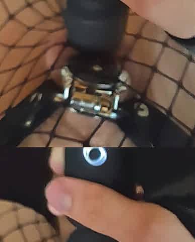 Sissy Leaks From Her Cage While Slammed by Fuck Machine