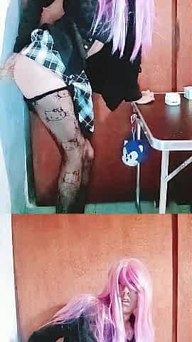 Pink hair sissy e-gal banging booty with sextoy