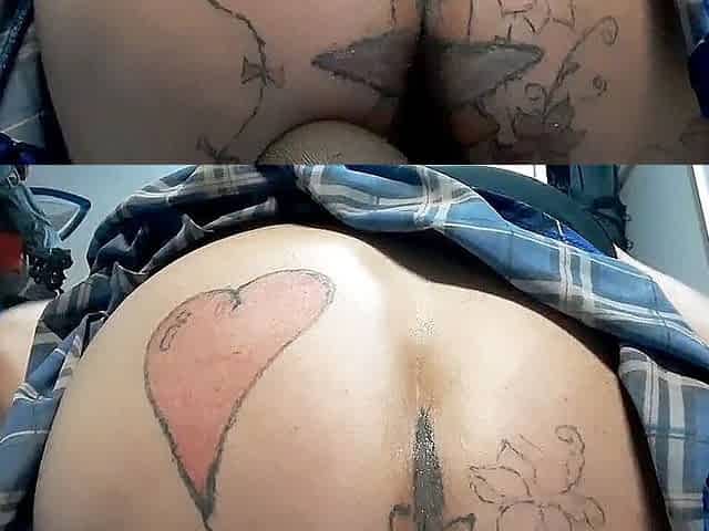 XXL butt plug ruined my sissy tattoo boy pussy in blue mini skirt