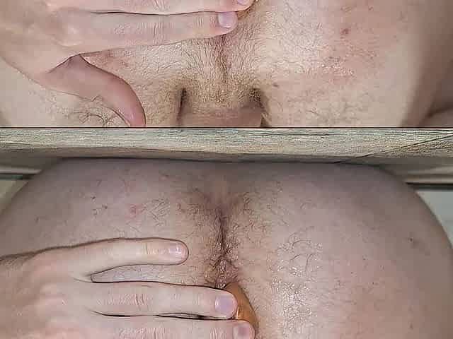 femboy with large ramrod playing with booty-ramming and trying fist himself