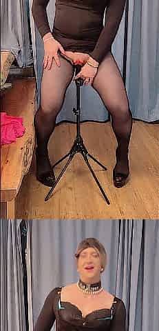 Sissy riding sextoy with fake snatch on a tripod