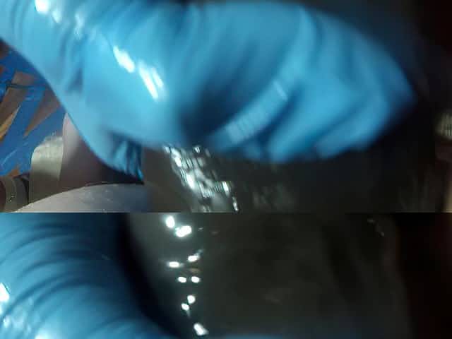 Torturing balls in new latex shorts and stockings