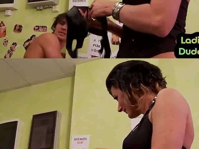 LADIES USE DUDES - Strapon dommes fuck a sissy subject in the bar