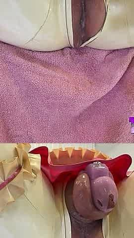rubbing lotion on chastity cage and groin and skin. turn me on