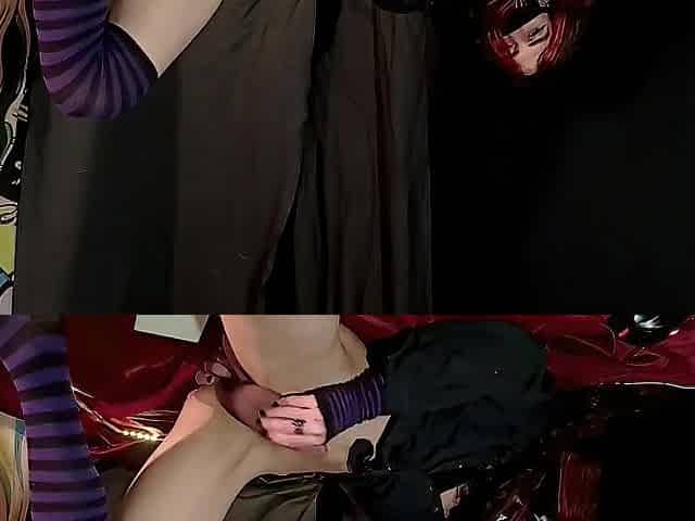 A costume, heels and a chastity cage. Trying a giant vibrator and cumming in my tights!