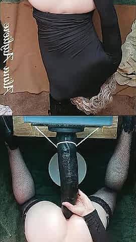 Sissy Doxy in Satin Underware Riding Sex-toy and Sissygasm Cum in Chastity