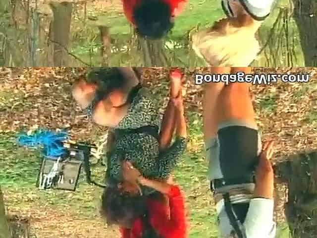 Spanking Kira in predicament bondage