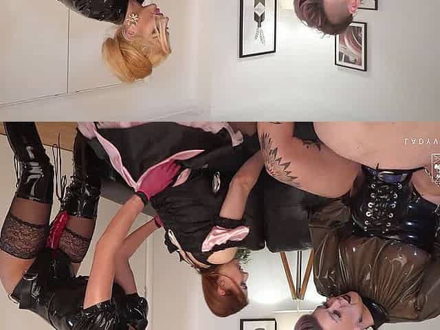 Latex queen pegging sissy