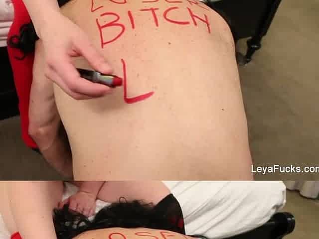 Anastasia Mastix belt on her chap sissy serf anal toy female domination