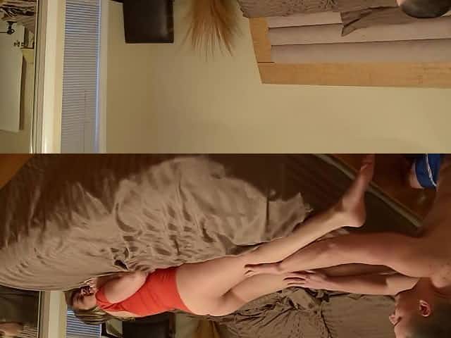 Brother jerks off and then fucks her blond hair lady sister