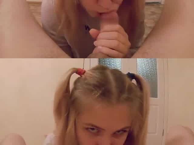 Blonde step sister blowjob - handjob and cum in mouth