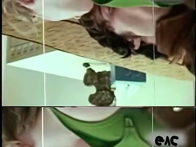 Skanky blonde teen strokes hard dick gently in a retro porn video