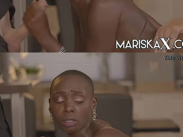 MARISKAX Ebony babe Zaawaadi takes on two white cocks