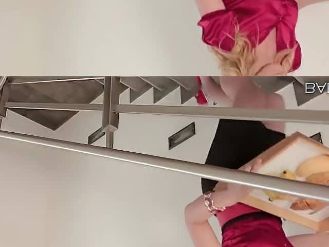 Skinny Blonde Mature in Stockings Fucks the Decorator