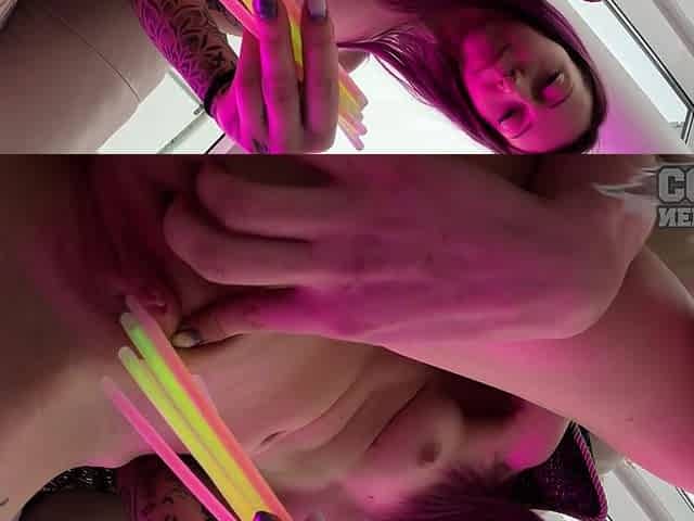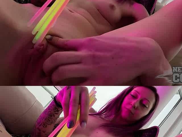 Skinny Model Bleika Gapes Open Her Pussy With Glowsticks
