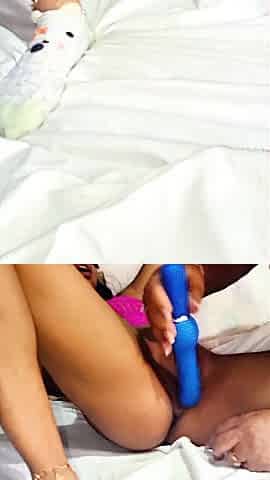 Ebony wife bunny dildoing her dark twat