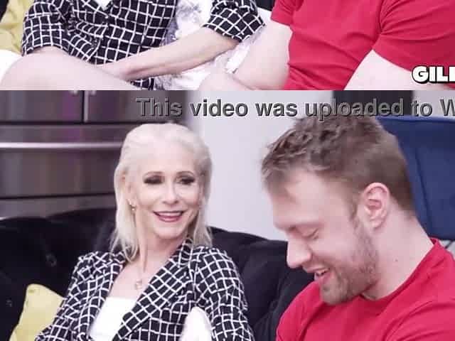 Hot blonde granny Sylva catches a teen watching porn and joins in on the fun