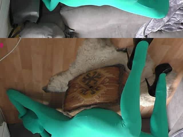 Slim girl in tights and high high-heeled slippers is fapping on web cam, in the middle of the day