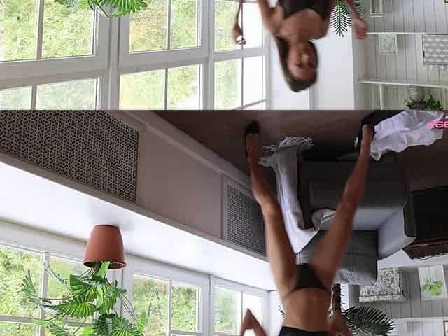 Lady Sonia up the Skirt in the Kitchen