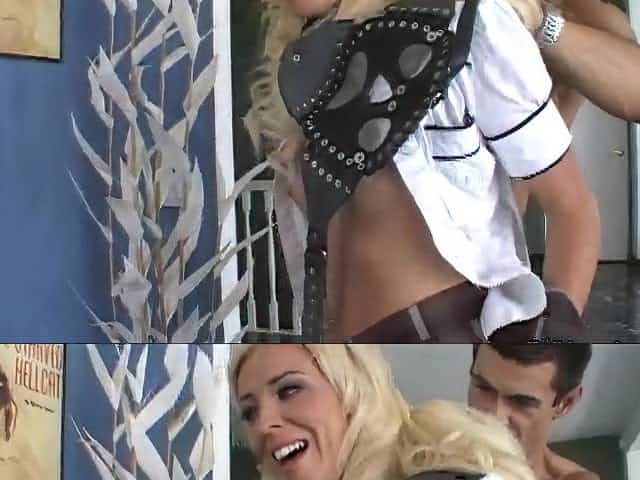 Blonde office slut Rebecca Volpetti ass fucked in a skirt