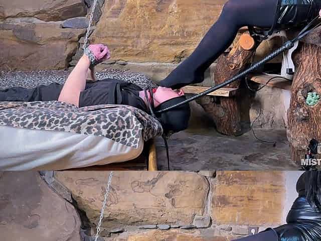 Female Domination Session with Nylon Feet and Big Ass of a Witch in Castle