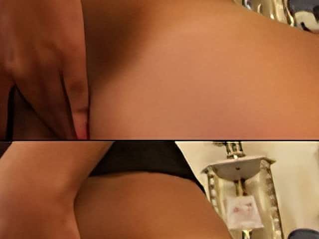 Slave girl in female chastity belt tease herself with selfbondage