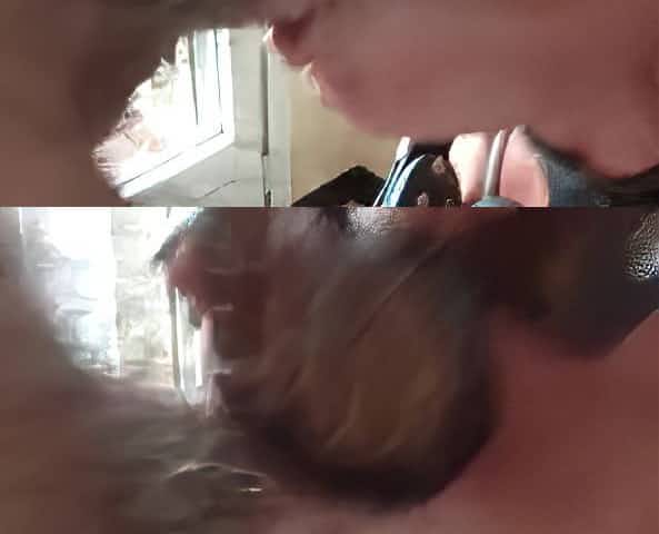 Mature slave girl on her knees deepthroating cock